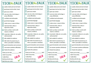 - Tick the Talk Peer Assesment Strips for SOLO Talks